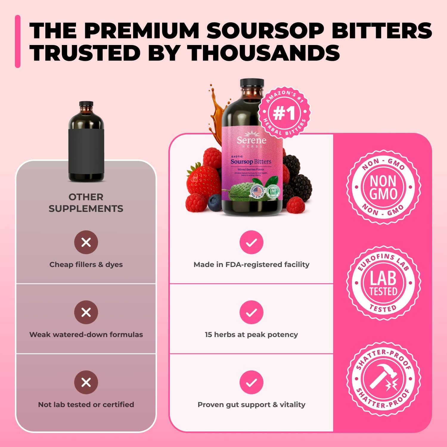 Look, there are tons of supplements making big promises. But Serene Herbs Soursop Bitters stands out because: